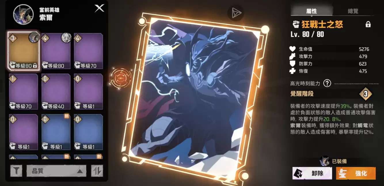 另一项值得重视的天赋为勃勃野心,该天赋可有效提升攻击速度并优化普通攻击的循环节奏,使雷神在短时间内完成更多次打击。配合雷神之力的感电叠加机制,形成高频输出链,在对抗防御较低的敌人时展现出极强的压制力。