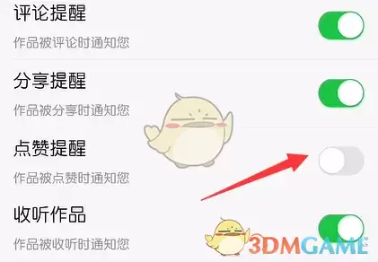 4、最后,点击关闭“点赞提醒”滑块开关。