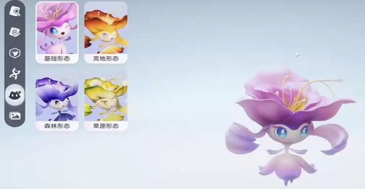 有一些更契合高地环境的飘飘花,它们在颜色和相貌上面都不一样,比如说橙红色的飘飘花就是是此类更适合高地的,还有一些森林形态的飘飘花,它在外观上都是一些幽深蓝色的色调,在装饰品上还有更多的树叶以及藤蔓,所以他们在外观形态上都会有各种不一样的选择,当然目前比较少见的是草原形态的白白花,它们的色彩虽然是黄色加白色的清新色调,但是看起来非常清新,也有一些草原植物的元素,后期的花舞兰在升级之后,也会根据这些不同的形态达到颜色上面的变化。