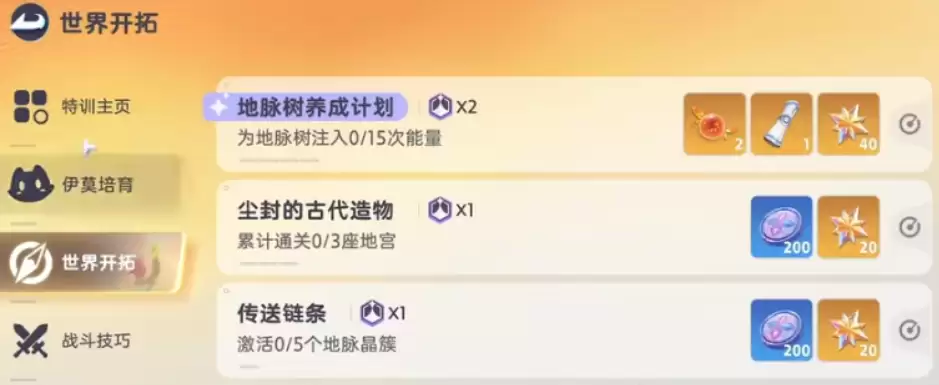 第三个方式就是参与世界探索的任务,这里在世界地图当中探索的时候,所有的任务当中基本都有辉石的赠送,但是奖励的数量不太一样,一般来说完成难度比较高的任务,给的是40个辉石奖励,如果是简单的任务,给的基本都是20个辉石。这里的玩法其实就相当于游戏当中的任务成就玩法,所以参与这个板块里面,根据目前任务的要求来完成,就可以获取相应数量的辉石,难度自然是不高的。