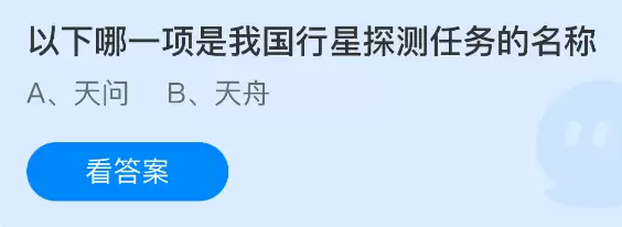 以下哪一项是我国行星探测任务的名称?支付宝小鸡课堂开课啦!每天花一分钟答题赚饲料,喂喂小鸡就能贡献爱心啦!轻松又意义十足!2025年10月25日蚂蚁庄园的小鸡课堂题目正确答案是【天问】,2020年4月24日,国家航天局正式宣布将行星探测任务命名为“天问系列”.