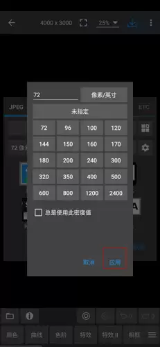 4、在像素选择页面中找到合适的像素大小,点击应用按钮;