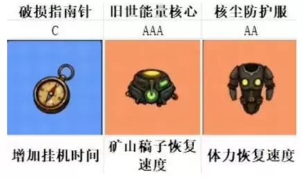 1.作为养成型游戏,资源为王,所以能带来资源增益的藏品可作为第一优先级升星核心以 恢复速度 资源收益 钞票获取为主,第一个就是破损指南针,品质低 收益高,主要是好升级,获取的收益也很稳定;其次就是旧世能量核心,这个也很不错,优先级也是非常高的,挖矿的资源很可观;再就是核尘防护服,这个很重要 玩家也可以优先考虑,毕竟体力是这个游戏的核心,没有体力什么都干不了。