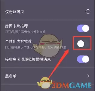 4、进入隐私权限界面,点击【个性化内容推荐】右侧按钮关闭。