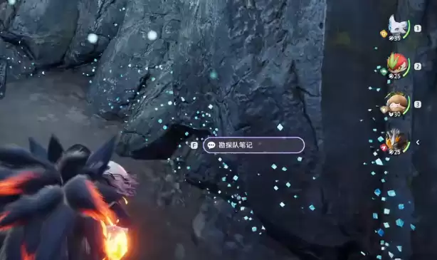 此时,小炭犬的点火技能便派上用场。使用该技能烧掉堵塞物后,洞口便会显露出来。进入洞穴后,玩家将找到一本笔记——属于勘探队的遗留物。阅读笔记内容可以了解到,这个洞穴中还栖息着一只神奇的宠物。在任务指引下,玩家可以直接开启旁边的大门。