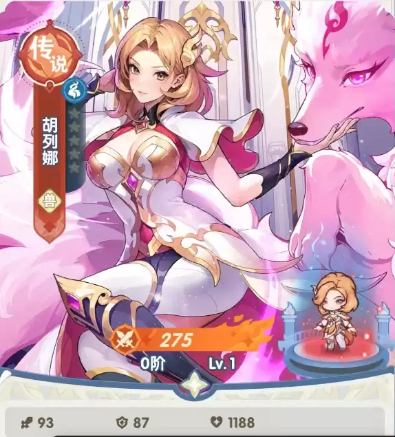狐列娜的终极技能“妖狐真身”在第二回合释放,使我方全体永久获得吸血加成。当自身攻击暴击时,有几率眩晕目标,还能额外提升全体队友的效果命中等属性。