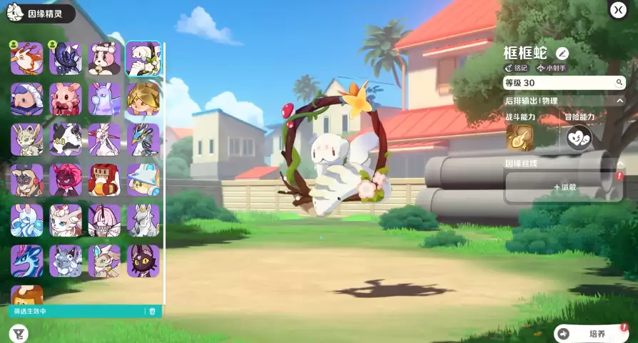 框框蛇是游戏中非常典型的一名后排输出精灵,建议玩家将其布置在后排位置。它的输出能力相当出色,主要依靠物理攻击进行持续打击。