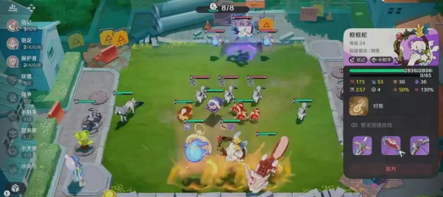 这个强化效果不仅作用于框框蛇自身,还会覆盖到同排相邻的其他精灵。这些队友也能够获得足够的强化,因此这是一个群体作战的强化能力。尽管没有覆盖全体友方单位,但只要其他角色处于同一排,带来的加成就会非常可观。