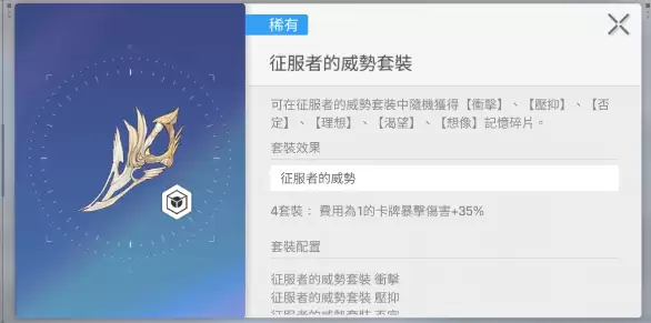 首先是依赖一费卡打输出的角色,比如雷欧娜,她最适合的配置是“征服者的威势”四件套。这套装备能直接把一费卡的暴击率提升35%,让原本频繁施放的技能输出大幅跃进。