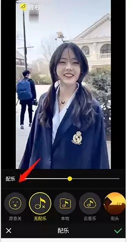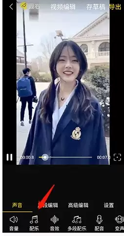 3. 进入编辑页面后,请注意底部工具栏中的“声音”选项。点击后会弹出子菜单,请选择其中的“配乐”功能。