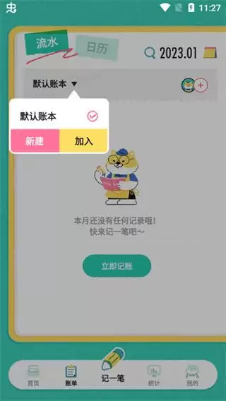 在账本页面中找到并点击“默认账本”选项,此时会展开功能菜单。在菜单中选择“加入”按钮,进入账本共享设置界面。
