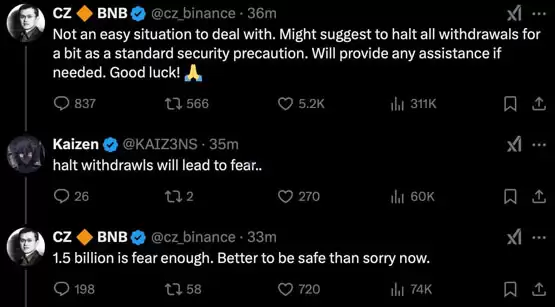 CZ 还回复网友称:“15 亿美元的损失已经令人震惊,现在安全至上才是最重要的。”