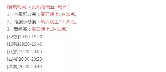 关于比赛时间,积分赛定于开服第五天晚上的7:00至8:00举行。晋级赛则安排在第六天晚上的7:00至9:00。赛事将依次推进32强、16强以及八强的对决,每一轮之间衔接紧密,因此请务必留意比赛时间,千万不要错过。
