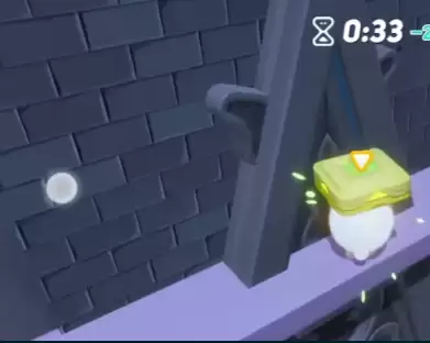 站在下图所示的立柱上,即便不做任何躲藏动作,南瓜也将难以直接攻击到你,从而有效拖延时间直到比赛结束。然而,要想登上这个位置并不简单,需要团队配合——最好由一名队友站在地面上的大南瓜顶部,然后将自己顶上来,即可安全停留。