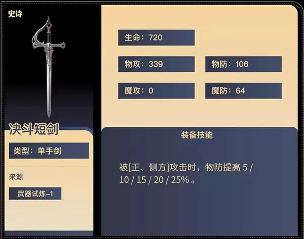决斗短剑专为竞技与单挑战场所设计,具备优秀的爆发能力与控制效果,适合喜欢高强度对战的玩家。