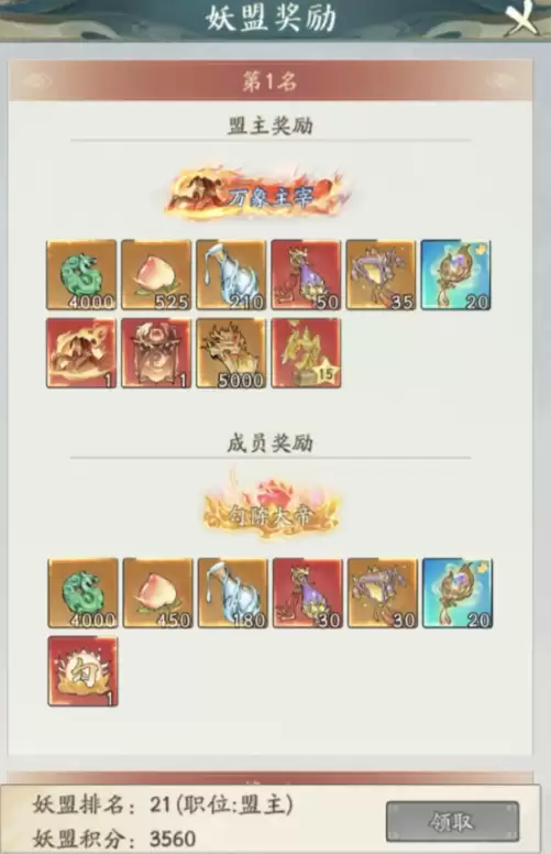 - 妖盟排名:按各轮次所获古域积分总和进行联盟榜排位。