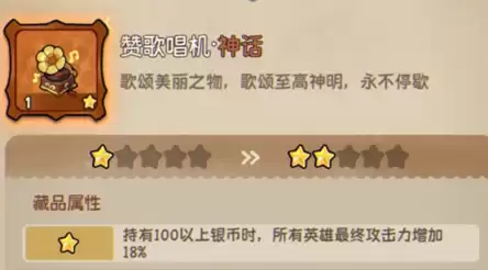 如果说瓢虫是前期辅助,那么赞美歌唱机则是着眼于中后期战力的关键《冒险之星》藏品。它的机制是:当你保持持有100以上银币时,能为队伍提供可观的输出加成。因此,在游戏后期,你需要有意识地保留至少100银币,以持续激活它的增益效果,从而维持队伍的输出能力。