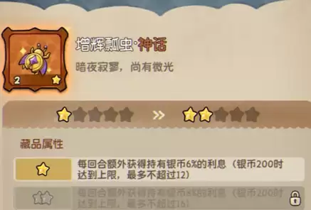 增辉瓢虫是一个能帮助你“钱生钱”的理财型《冒险之星》藏品。它的效果是让你囤积的银币产生利息,为你提供额外的资源收入。需要注意的是,其产生利息的银币存在上限,最高为200银币。