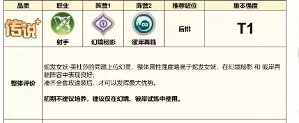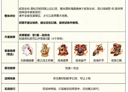 从强度上看,《龙魂旅人》万蛇之母在当前版本稳居T1梯队。其核心定位是后排远程物理输出单位。她的机制允许在“幻影秘境”与“彼岸再临”两大阵营间自由切换,具备典型的流水型射手特征——持续输出稳定,技能衔接流畅,并且环境适应性强。相较于同阵营的多面手型角色(如蛇发女妖),万蛇之母在单点压制力、技能倍率成长以及模型辨识度方面,均具备明显优势。