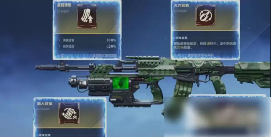 首先,1号插件位推荐选择“过载弹夹”或“超载弹夹”。其主要目的是大幅提升武器的载弹量。同时,强烈建议玩家搭配“多重装填”技能。这样组合后,即使在激烈的连续射击中,也能有效避免因换弹而中断输出的尴尬情况,确保玩家在战斗过程中能够进行持续性的火力攻击。