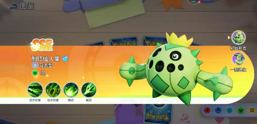 梦歌仙人掌的初始形态为刺球仙人掌,圆滚滚的身躯布满尖锐倒刺。作为风属性攻击型宝可梦,其战斗风格以隐忍和反击为核心。被动技能在受到攻击时可反弹部分伤害,并附加微量中毒效果,为后续进化埋下重要伏笔。此阶段的刺球仙人掌仍需训练师耐心培养,逐步激发其潜在能力。