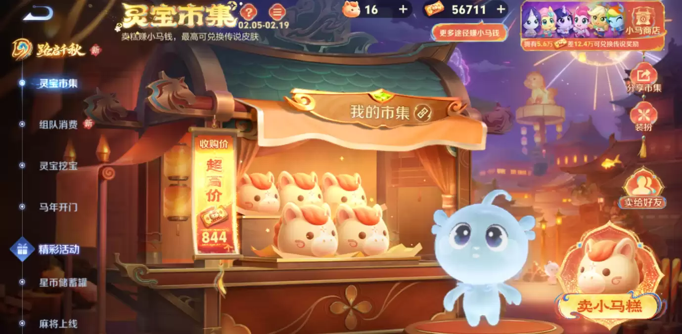 2026年2月13日,《王者荣耀》灵宝市集火热进行中!玩家每日登录并分享市集码即可轻松赚取小马糕,还能以高价出售换取小马钱。市集与挖宝玩