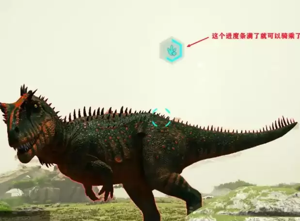 进入友好状态后,你可以骑上它,但驯服并未彻底完成。在这十分钟内,你需要骑着它去打猎,并将击杀的生物尸体拖到它面前让它吃下。每喂食一次,驯服进度就会增长一点。猎物种类不限,从小的渡渡鸟到霸王龙幼崽都可以。