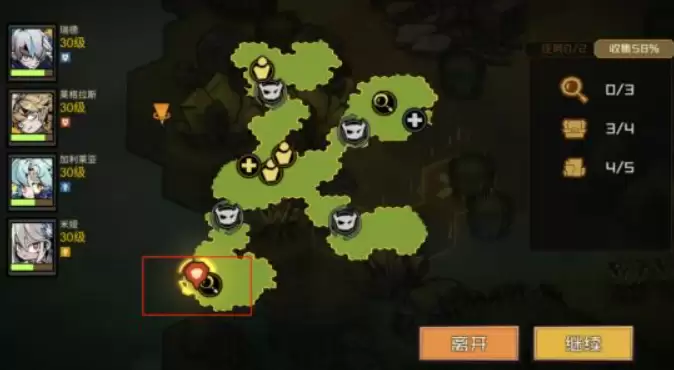 第二章第三关稍微复杂一点。先要在图一和图二的位置分别拿到藏宝线索,拿齐之后去图三指定地点击退魔物。打完之后会出现一个NPC,和他对话时选择"原谅",这样才能拿到神秘钥匙。如果选择其他选项,钥匙就拿不到了,这个选项不能选错。