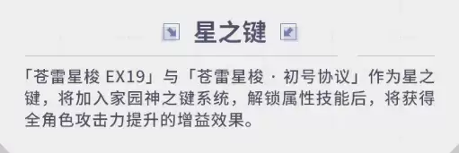 「苍雷星梭EX19」和「苍雷星梭·初号协议」都会加入家园神之键系统,解锁属性技能之后,全角色攻击力都会提升,对整个账号都有好处。