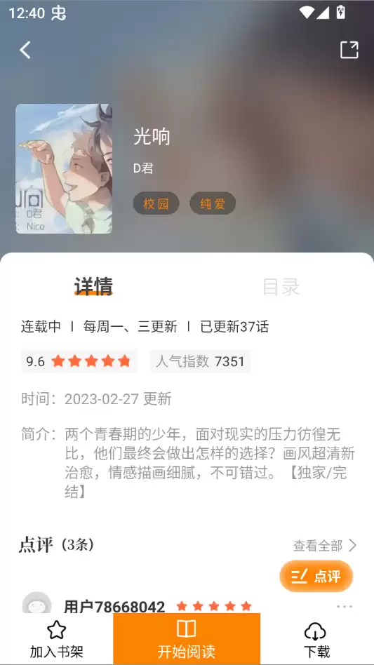 点击任何一部漫画的封面,就会进入其详情页面。这里包含了作品简介、章节列表等信息。确认无误后,点击“开始阅读”按钮,即可沉浸于故事之中。