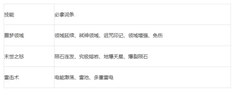 核心技能选择:魔法弹 + 噩梦领域 + 末世之怒 + 雷击术 + 冰霜漩涡