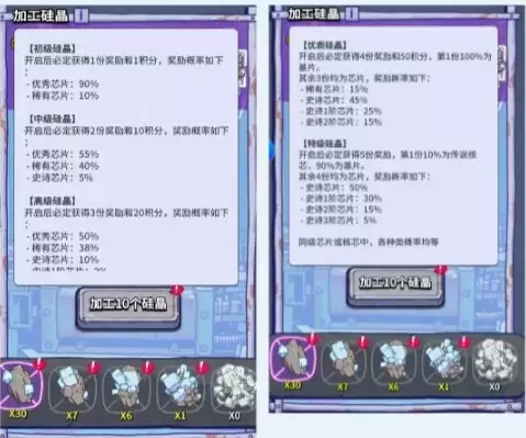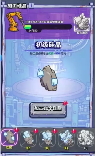 首先,我们需要了解游戏内的核心建筑——芯片建筑。这里的矿石分为五个清晰的等级:初级、中级、高级、优质以及最高级的特级。玩家只需将采集到的矿石放入建筑中进行加工,就会累积进度条。