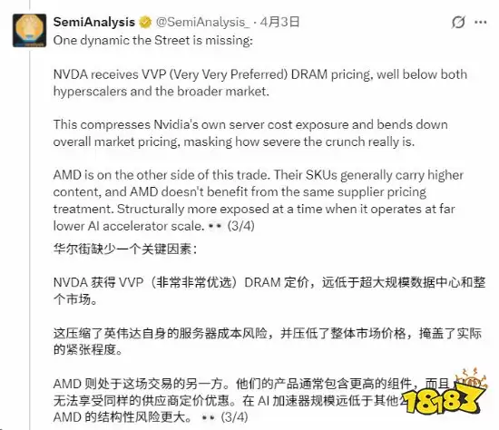 内存成本重压云厂商资本支出,为何NVIDIA能置身事外? SemiAnalysis与多家供应链报告指出,