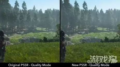 Lopez特别指出,升级版PSSR在处理复杂场景,比如茂密植被时,效果提升最为直观。下面这组对比图就是最好的证明——游戏中的草地细节、层次感和整体观感都有了肉眼可见的增强。在游戏开发中,能以如此小的调整代价换来显著的视觉提升,确实相当难得。