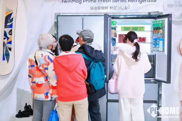 冰洗产品聚焦健康与品质。TCL双磁鲜冰箱模拟北极圈“-40℃深冷+高稳态磁场”环境,通过TCL原创的双磁保鲜科技(冷冻深冷磁鲜与冷藏分子磁鲜),实现长达100天的食材锁鲜。TCL AI超级筒洗烘一体机P9 Ultra,采用540mm大筒径、6D提升筋与海波纹内筒设计,专注于“洗净与护衣”。其全域免污2.0技术涵盖免污内筒、水氧冷水除菌及烘道自清洁,打造了洁净、健康、护衣的“衣物头等舱”。
