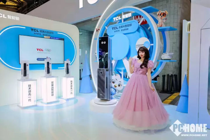 屏显技术同样赋能家庭安防。TCL实业展示的首创双屏AI智能锁TCL K11D Pro,配备了业内首个4英寸触控外屏,支持语音便捷操作。其AI智能管家功能可提供萌宠迎接动画与节日祝福,增强回家仪式感。AI双摄哨兵猫眼实现了无死角安防监控:上摄识别人脸并预警逗留,下摄监测地面包裹。配合具备AI侦测的C5摄像头与S60安心柜,共同构建了智能、安心的全场景安防体系。