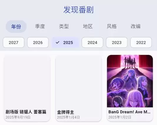 2、发现番剧可以根据自己的喜好来进行挑选,比如类型、季度、地区、风格等。