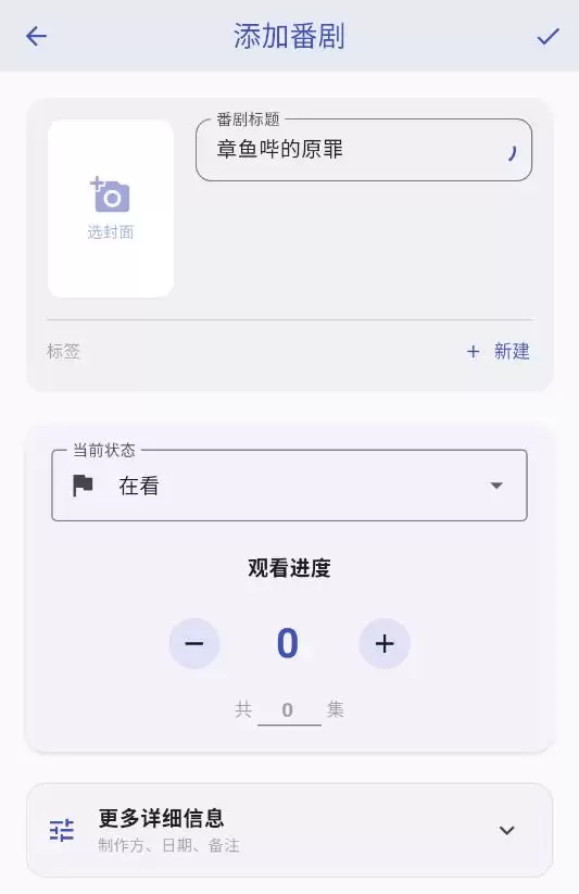 1、在这里可以添加你正在看的番剧,比如标题,封面,观看进度都是可以选择的。