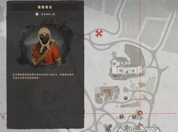 赤血沙漠南部区域同样设有一处黑市据点。其具体坐标虽名称不详,但已在下图光标处进行明确标记。