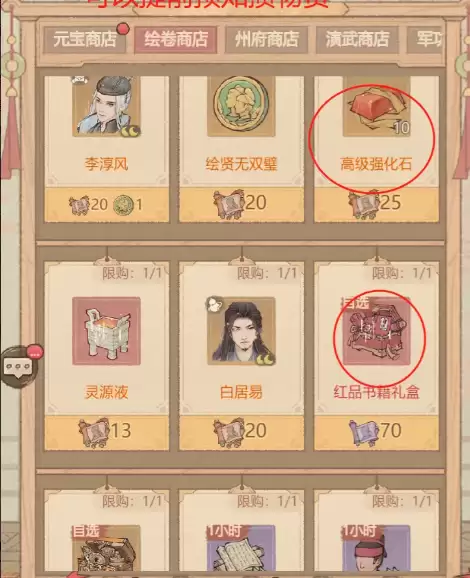 《这城有良田》绘卷商店需拥有1个12星以上僚属解锁。优先兑换顺序:自选橙马蹄金(核心道具)、高级强化石(后期缺口大)、灵源液(洗炼必