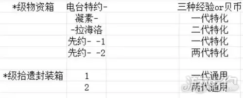 “物资箱”是材料获取的重要补充来源。图中“二”指第二代箱子,“两”则表示两代箱子皆有产出。游戏内常见的物资箱类型包括: