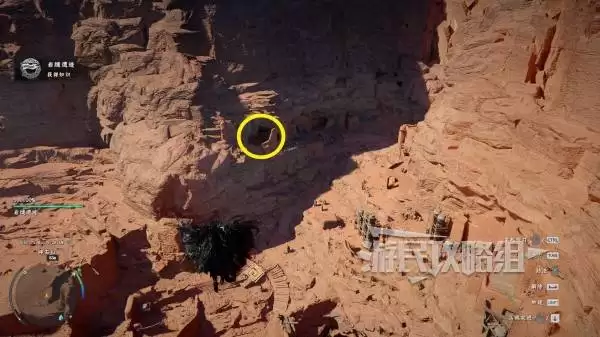 武器位于红沙区域的核心地标——碎岩山遗迹。最效率的路径是:从周边高地直接使用滑翔翼空降,可完全避开地面敌对生物的干扰。