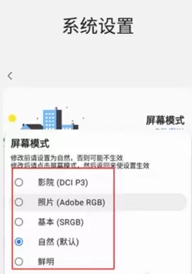 紧接着,你会看到五种预设模式可供选择,系统默认是“自然”模式。这就像为你的屏幕准备了五套不同风格的“滤镜”,方便你快速切换整体视觉基调。