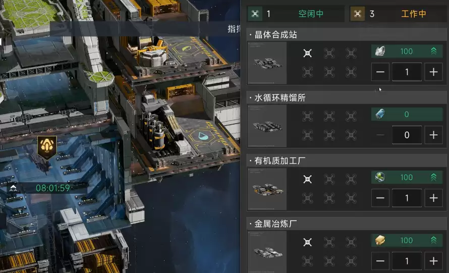 当前版本中,生产线覆盖三大基础制造模块:有机物精炼线(用于舰体生物装甲与生态维生组件)、稀有金属冶炼线(支撑武器框架与护盾发生器)、高纯度晶体合成线(驱动超空间引擎与相位武器)。每条产线均可独立升级,且随整体产能阈值提升,系统将逐步开放进阶产线,如反物质催化槽、纳米修复阵列等扩展模块。效率提升的关键路径在于持续投入对应资源,而非单纯堆叠产线数量——资源供给稳定性直接决定产线满载率与单位时间产出比。