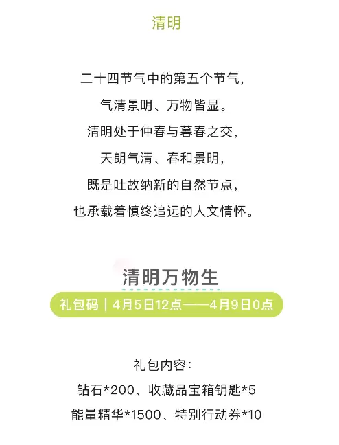 兑换码:清明万物生