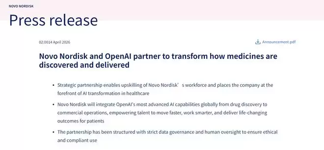 诺和诺德与OpenAI达成战略合作,AI全面赋能药物研发与商业运营