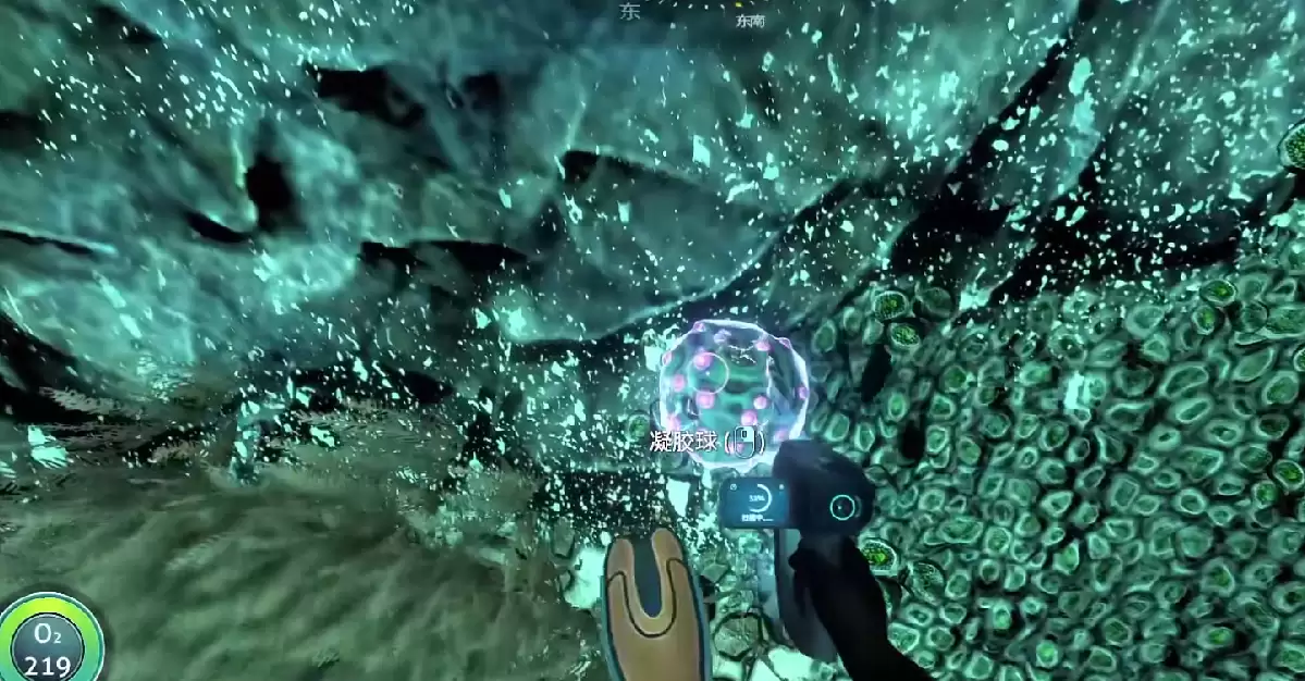 制作氧气瓶所需的另一材料——凝胶球,同样分布在19号逃生舱周边水域。一个高效的技巧是:使用小刀切割凝胶球可获得其种子。将这些种子带回基地的水下种植箱进行培育,便能建立可持续的凝胶球农场,实现资源的永久自给,无需反复外出搜寻。