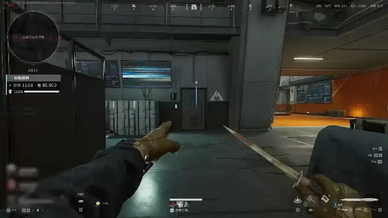 目标位于监狱行政区一层主厅。首先定位拉闸控制室,离开该房间后,在首个楼梯转角处即可发现加密门禁系统。