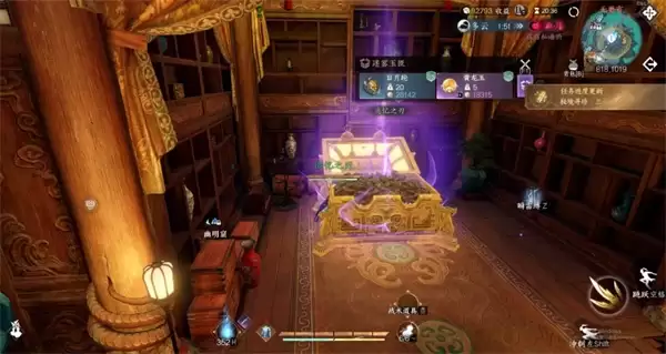 首先,传送至坐标(1077, 1036)。然后,面朝宝箱所在的右侧方向,使用“瞬雷缚”技能。成功释放后,角色将被直接传送至上方(1186, 1000)的宝箱点。开启宝箱后,通过“自断”方式可安全离开该区域。