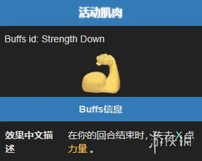 核心的结算逻辑在“回合结束时”强制执行:你将失去与“活动肌肉”层数完全一致的力量值。这是一个强制平账的过程。